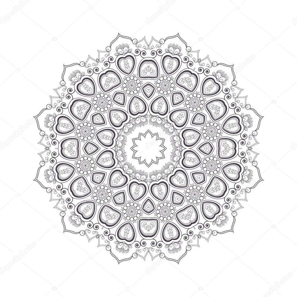 Hand Drawn Flower Mandala For Coloring Book Black And White