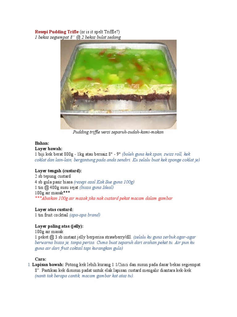 Resepi Pudding Trifle Doc